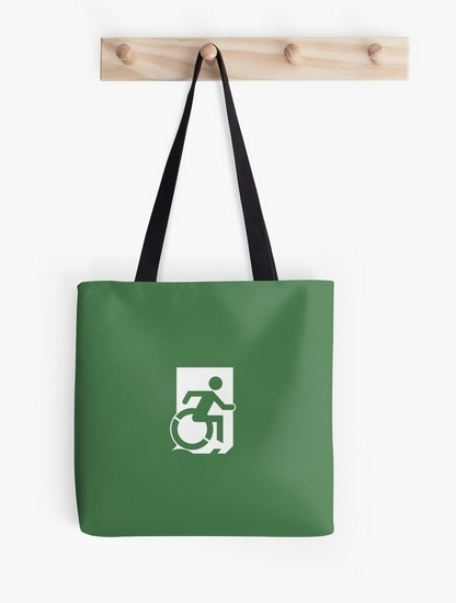 Accessible Exit Sign Project Wheelchair Wheelie Running Man Symbol Means of Egress Icon Disability Emergency Evacuation Fire Safety Tote Bag 112