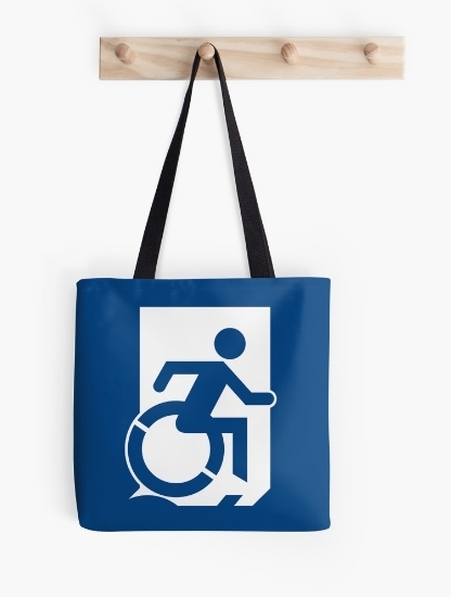 Accessible Exit Sign Project Wheelchair Wheelie Running Man Symbol Means of Egress Icon Disability Emergency Evacuation Fire Safety Tote Bag 113
