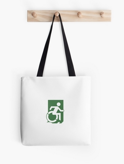 Accessible Exit Sign Project Wheelchair Wheelie Running Man Symbol Means of Egress Icon Disability Emergency Evacuation Fire Safety Tote Bag 121