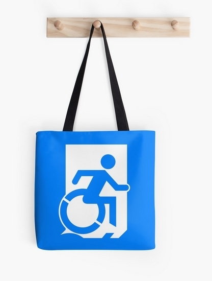 Accessible Exit Sign Project Wheelchair Wheelie Running Man Symbol Means of Egress Icon Disability Emergency Evacuation Fire Safety Tote Bag 140