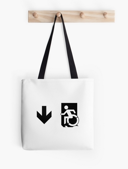 Accessible Exit Sign Project Wheelchair Wheelie Running Man Symbol Means of Egress Icon Disability Emergency Evacuation Fire Safety Tote Bag 160
