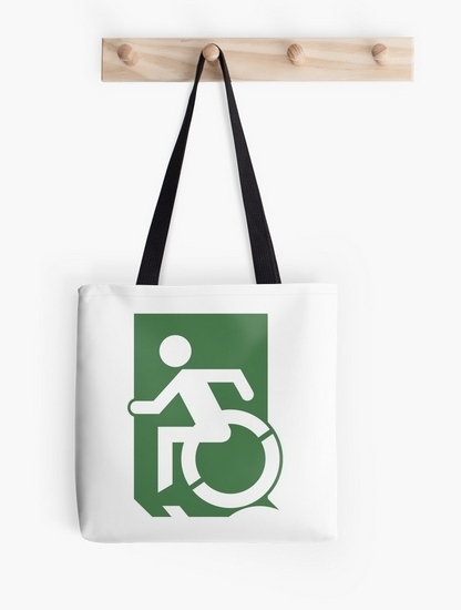 Accessible Exit Sign Project Wheelchair Wheelie Running Man Symbol Means of Egress Icon Disability Emergency Evacuation Fire Safety Tote Bag 36