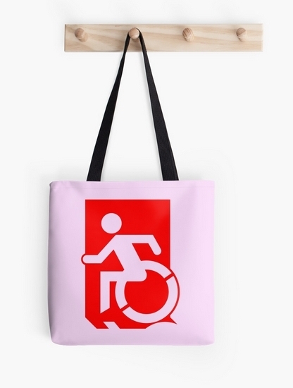 Accessible Exit Sign Project Wheelchair Wheelie Running Man Symbol Means of Egress Icon Disability Emergency Evacuation Fire Safety Tote Bag 45