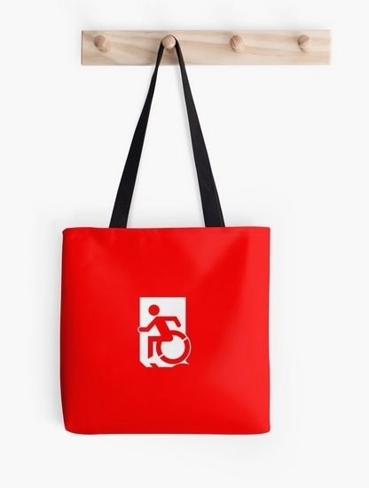 Accessible Exit Sign Project Wheelchair Wheelie Running Man Symbol Means of Egress Icon Disability Emergency Evacuation Fire Safety Tote Bag 62