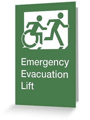 Accessible Exit Sign Project Wheelchair Wheelie Running Man Symbol Means of Egress Icon Disability Emergency Evacuation Fire Safety Lift Elevator Greeting Card 2