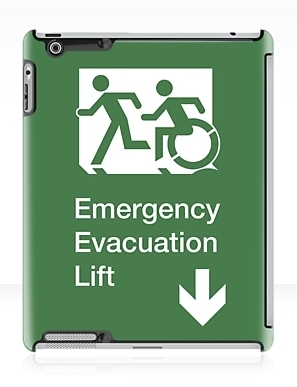 Accessible Exit Sign Project Wheelchair Wheelie Running Man Symbol Means of Egress Icon Disability Emergency Evacuation Fire Safety Lift Elevator iPad Case 1