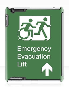 Accessible Exit Sign Project Wheelchair Wheelie Running Man Symbol Means of Egress Icon Disability Emergency Evacuation Fire Safety Lift Elevator iPad Case 12