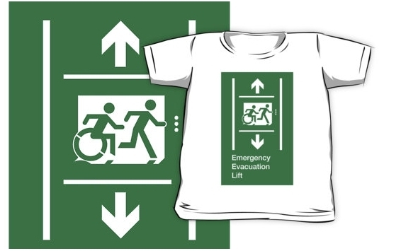 Accessible Exit Sign Project Wheelchair Wheelie Running Man Symbol Means of Egress Icon Disability Emergency Evacuation Fire Safety Lift Elevator Kids T-shirt 1