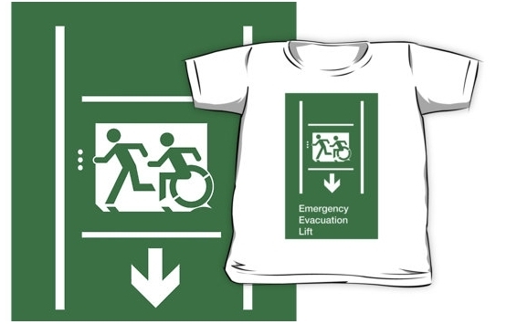 Accessible Exit Sign Project Wheelchair Wheelie Running Man Symbol Means of Egress Icon Disability Emergency Evacuation Fire Safety Lift Elevator Kids T-shirt 2