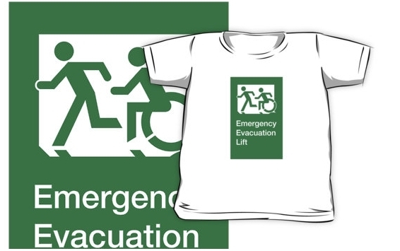 Accessible Exit Sign Project Wheelchair Wheelie Running Man Symbol Means of Egress Icon Disability Emergency Evacuation Fire Safety Lift Elevator Kids T-shirt 5