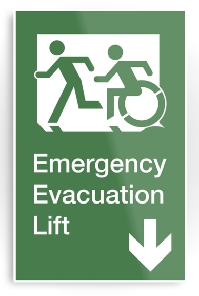 Accessible Exit Sign Project Wheelchair Wheelie Running Man Symbol Means of Egress Icon Disability Emergency Evacuation Fire Safety Lift Elevator Metal Printed 11