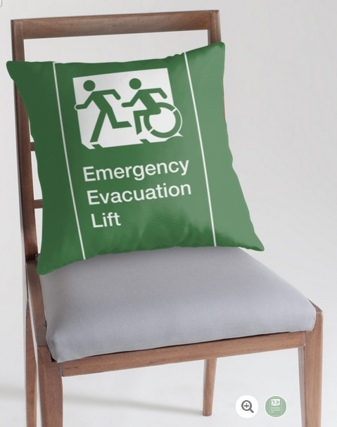 Accessible Exit Sign Project Wheelchair Wheelie Running Man Symbol Means of Egress Icon Disability Emergency Evacuation Fire Safety Lift Elevator Throw Pillow 1