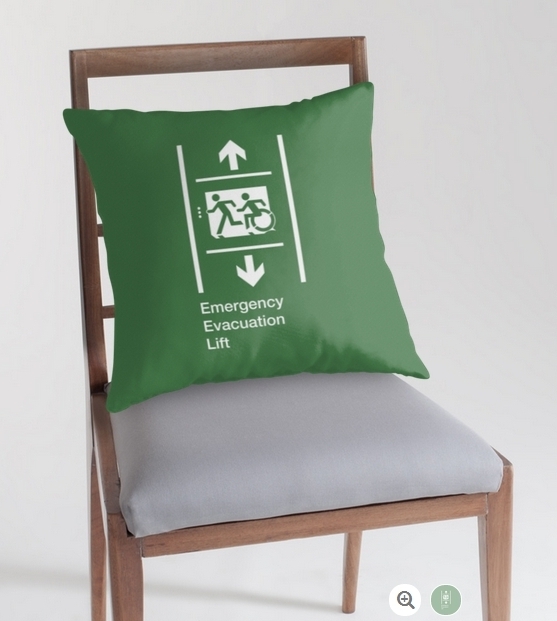 Accessible Exit Sign Project Wheelchair Wheelie Running Man Symbol Means of Egress Icon Disability Emergency Evacuation Fire Safety Lift Elevator Throw Pillow 11
