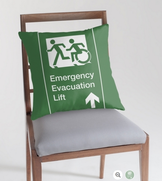 Accessible Exit Sign Project Wheelchair Wheelie Running Man Symbol Means of Egress Icon Disability Emergency Evacuation Fire Safety Lift Elevator Throw Pillow 12