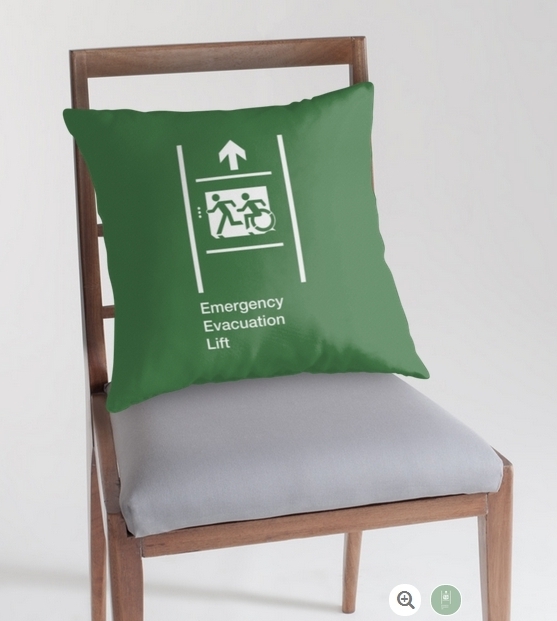 Accessible Exit Sign Project Wheelchair Wheelie Running Man Symbol Means of Egress Icon Disability Emergency Evacuation Fire Safety Lift Elevator Throw Pillow 2