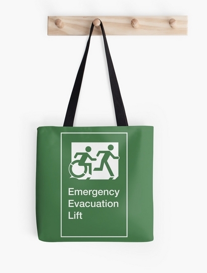 Accessible Exit Sign Project Wheelchair Wheelie Running Man Symbol Means of Egress Icon Disability Emergency Evacuation Fire Safety Lift Elevator Tote Bag 8