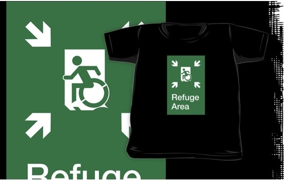 Accessible Exit Sign Project Wheelchair Wheelie Running Man Symbol Means of Egress Icon Disability Emergency Evacuation Fire Safety Refuge Area Kids T-shirt 1