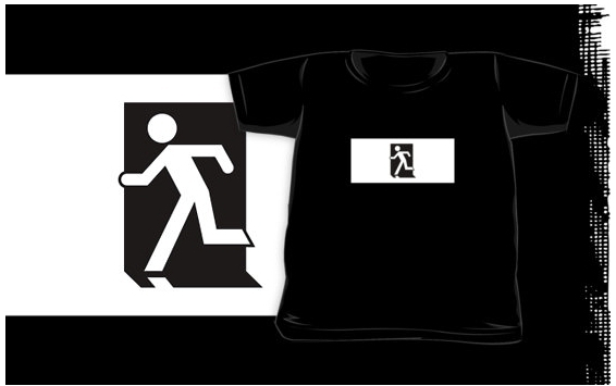 Running Man Fire Safety Exit Sign Emergency Evacuation Kids T-Shirt 65